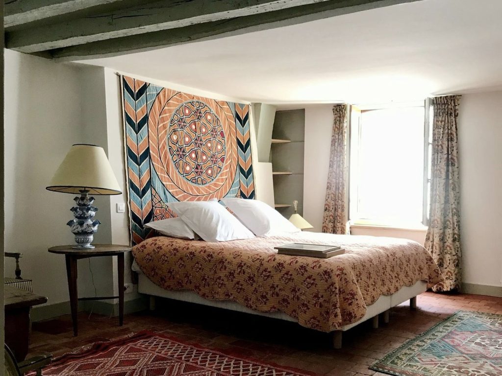 Chambre Istanbul / Spacieuse et très confortable (22 m2 ), elle ouvre au sud par une grande fenêtre avec vue sur l’église classée du 15ème siècle et les arbres du parc du château de Saint-Fargeau. Équipée d’un lit en 180 x 200, celui-ci peut être séparé en deux lits sur demande.