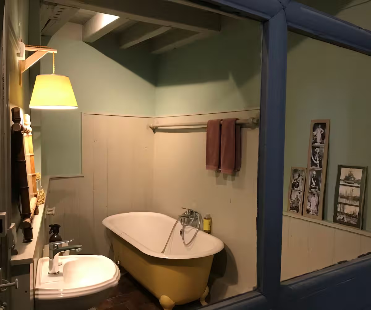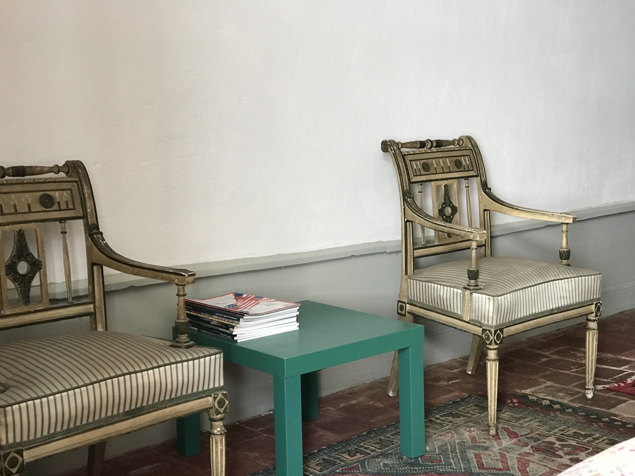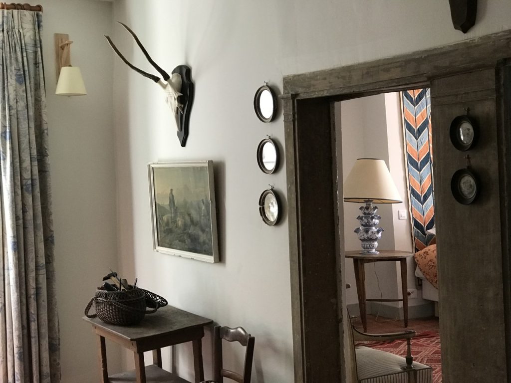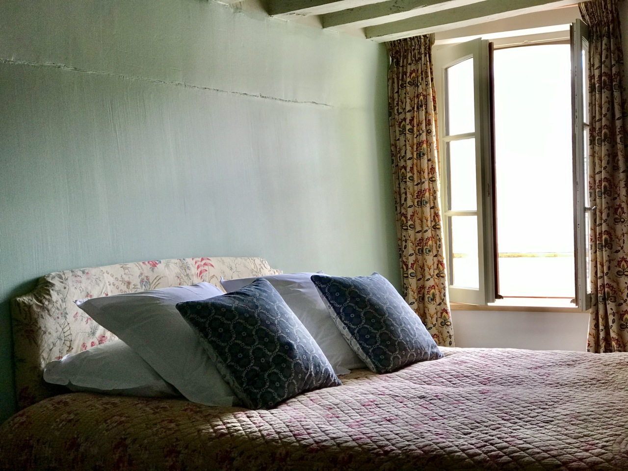 Chambre Verte / Comme la chambre voisine, et ouvrant au sud avec magnifique vue sur l’église du 15ème siècle et les arbres du parc du château, elle est très confortable. (18 m2) Équipée de deux lits jumeaux 90 x 200 cm. La salle de bain (bain, lavabo, WC) se trouve exactement entre les deux chambres qui sont décorées de meubles de famille, et de souvenirs de voyage.