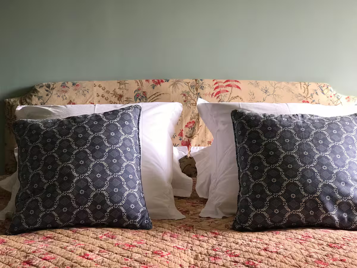 Al primo piano, la Suite Bleu-Vert, composée de deux autres chambres côte à côte, avec leur salle de bain et wc. On y accède soit indépendamment, par l’extérieur, soit par l’intérieur en passant par la chambre en mezzanine.